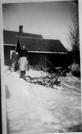 Tilda står vid vedlidret.
