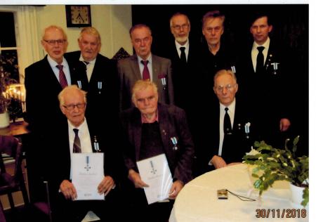 Medlemmar från Korsholms Krigsveteraner rf som fått medalj 18.8.2019 för penninginsamling.