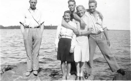 Fr.v: Knut Nygård, Ivar Snickars, Einar Nygård, Ragnhild Frants, Okänd.