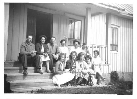 Översta raden: Evald Frants, Margit Frants, Robert Frants, Astrid Frants, Rudolf Mörk, Elna Frants.