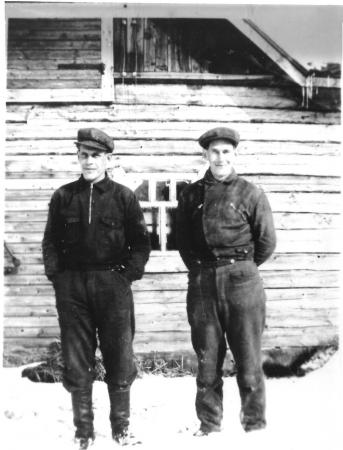 Snickarbröderna Alfred Bernhard och Uno Alexander Burman framför sitt snickeri.