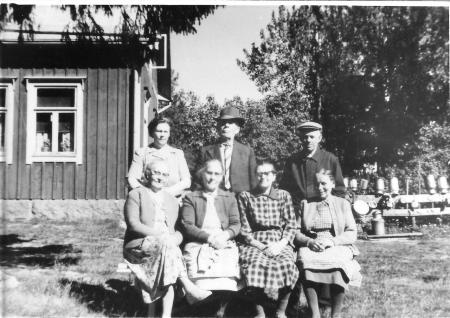 Stående fr.v: Hellen Burman (Maalaks Hellen), Erik Fant (Fanttin), Erik Alfred Burman (Maalaks Alfri).