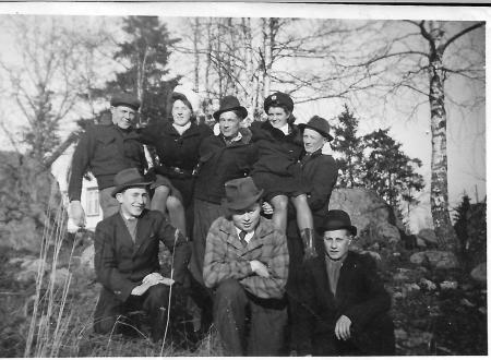 Uppe fr.v: Lars Järf, Vivi Burman (Björk), Felix Burman, Sally Fransholm (Burman), Okänd.