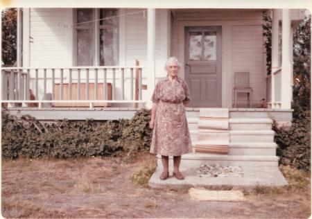 Ida Nygård (Båtos Iida, 1890-1980) framför sitt hus, nr 92 i Kosköboken.