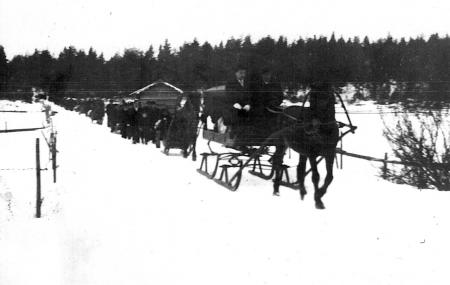 Okänt vem som begravs. Men antagligen är tåget på väg till Kvevlax.