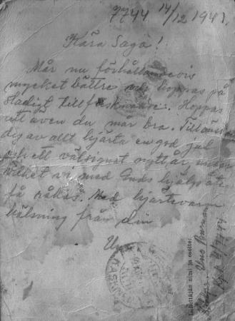 Kriget 1939-1945 Uno Burman brev