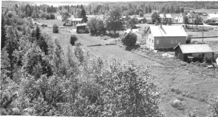 I förgrunden Alfred och Helga Burmans hus, nr 146 A i Kosköboken.