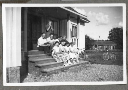 Kosköungdomar på samlingshusets trappa