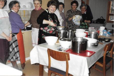 Jaktklubben kökspersonalen tillreder köttstuvning