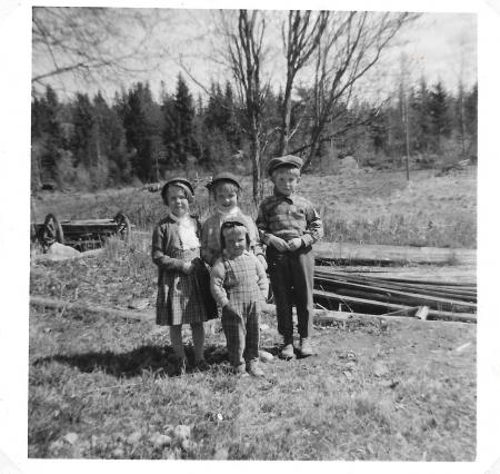 Fr.v: Marita Eriksson (Backlund), Lisbeth Krus (Berg), Alf Burman, och framför, Sten-Ole Burman.