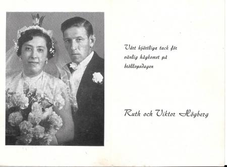 Bröllop tackkort Ruth (f. Frants) och Victor Högberg