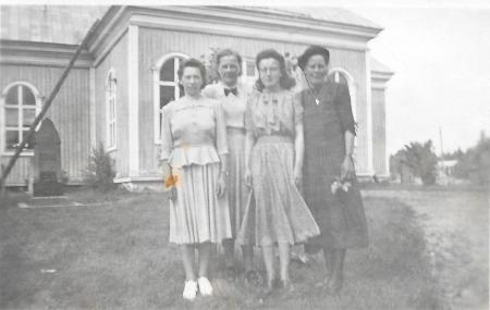 Astrid Frants 1921-2019 (Aagostas Astrid), Ragnhild Frants(Aagostas Ragnhild), Gunnel Mörk 1928-1986(Mörkkas Gunnel), Ellen Näsman 1916-2012 (HåLmas Ellen).