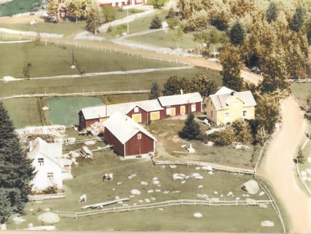 På bilden syns fyra hus: längst t.v. hus nr 28, längst t.h. hus nr.27 och delen på uthusraden längst t.h. är hus 39. I bakgrunden syns hus nr.21. Allt detta kan du kolla i Kosköboken!