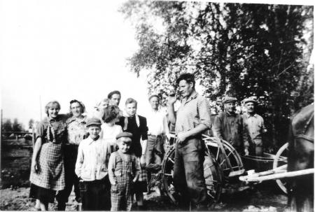 Fr.v: Gun-Britt Frants (Willför), Vivi Burman (Björk), Seidi Burman, Arvid BUrman, Berit Stoor, Robert L Frants, Knut Nygård, Knut Burman, Johannes Nygård. Framför står Lars Burman och Viola Björk (Mitts).