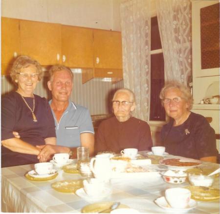 Fr.v: Ingegerd Hedqvist, Knut Nygård (1919-1985). Erika Nygård (1892-1980) och Gerda Hedqvist (1906-1996).