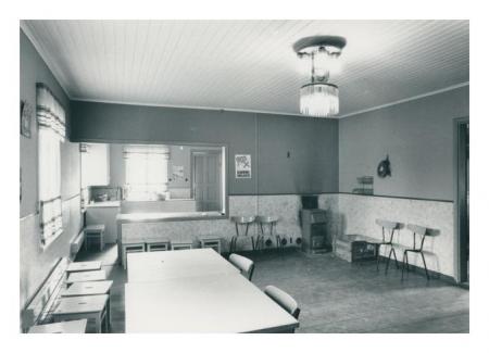 Så här såg serveringsrummet ut t.o.m 1985, då vi gjorde en utbyggnad mot öster, samt renoverade detta rum och tamburen.