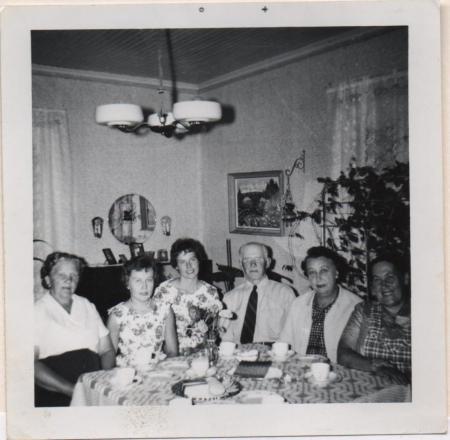 Fr.v: OKÄND, Gunnel Snickars (Paxal), Lisen Snickars (Jåfs), Evert Snickars, OKÄND, Edit Snickars (Kjellman).